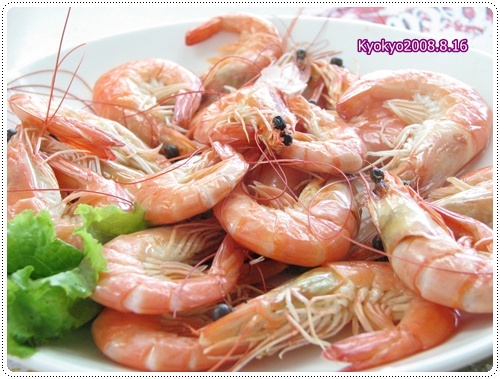 燙蝦,這個真的很不錯,每個吃起來都很彈牙,新鮮度都還挺高的,現叫現弄,所以煮完端上桌,還沒涼透時,就撿起一隻來吃,一邊剝殼一邊喊燙,不過沾點哇沙比入胃,好吃極了。