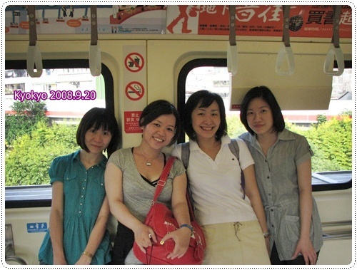 在回程的捷運上,大家搞笑得拍了不少有趣的照片,拿著我有點重的相機,一起玩四人自拍,的確要將全部的人都擠得進去話,就只好大家各憑本事囉!不過每個人都搶著要來試試看,卻拍了不少了不起的照片勒!不過這時候要和嵐說一句話:「下次照相記得和我合拍喔!」,因為我的臉可視大餅臉呢!超大的啦!