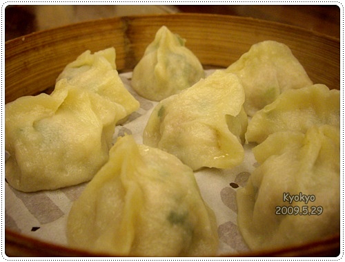 菜肉蒸餃,也是皮薄,吃餃子類的就是「皮薄」才是王道,記得我的北京同學說過,餃子皮要內厚外薄,不過杭州小籠湯包卻是皮薄到內餡看得一清二楚呢!可能是蒸餃皮和煮餃皮做法不同吧!這菜肉蒸餃也是美味,只是連續吃了含湯汁的小籠包和蒸餃後,嘴巴裡倒是有種油膩感,可能是肉餡中還含有點肥肉吧!才會有這樣的感覺吧~