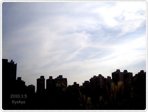 背光的拍攝方式,降低曝光的結果,只看到樓房高高低低的鋸齒狀,而天空帶著寒流來臨前飄渺的雲絲,意境嗎?就看各人解讀囉~