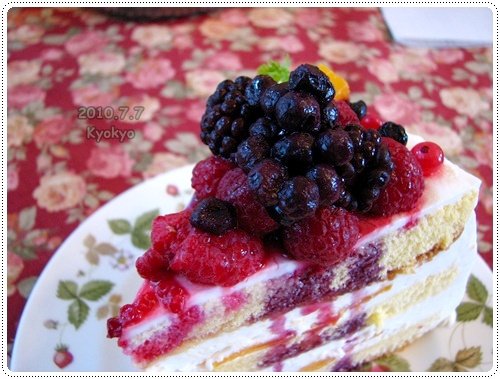 (綜合苺蛋糕,看上面鋪著滿滿的藍莓紅莓,我口水都要滴下來了)