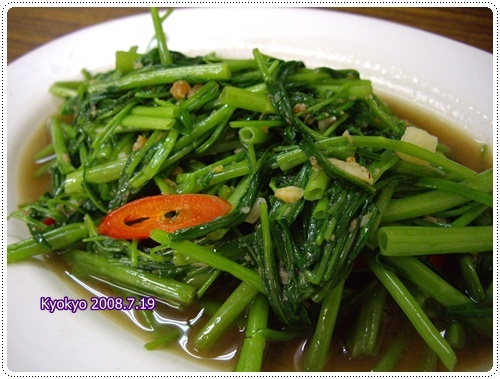 蝦醬空心菜,因為點完上述的菜之後,總覺得還可以再添些什麼,於是決定再點道蝦醬空心菜的定番料理,啊!加點這道菜真是對極了,雲泰館的蝦醬空心菜的蝦醬味大概是我吃過中最濃郁的,連有名的泰菜店都比不上雲泰館的滋味,蒜頭辣椒爆香後的處理,再加上蝦米蝦醬一起快炒,這樣的動作使的每一根空心菜都充滿著蝦子的味道,好~好~吃喔!